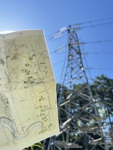 鉄塔はわかりやすい目印。みんな大好き? 机上講習会で地図にポイントをマークし、共有していました。