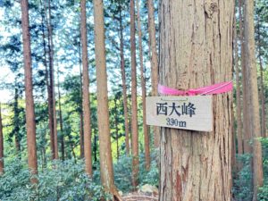どなたかが、プレートをつけてくださっていました。「令6年5月11日(土) 五常山~長尾根山~武蔵横手駅 アップダウンアリ 1.5時間 キツイよ」