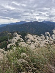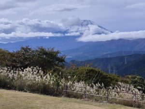 ススキの先には箱根の山々