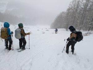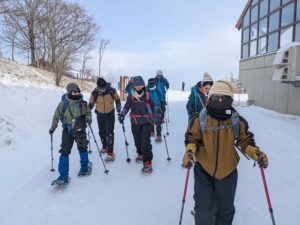 始めてスノーシューを経験する参加者もいましたが、難なく歩くことができました。