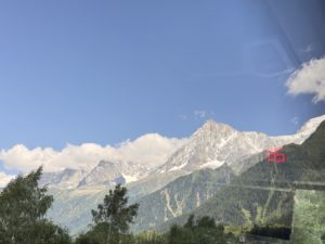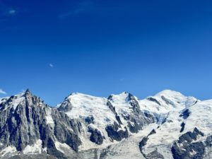 モンブランを見ながら、フランスのトレイルを歩く。フランス側の谷も美しかった。下った先のシャラミリョンでランチを摂り、リフトとゴンドラとバスに乗ってシャモニーの街へ戻って来た。