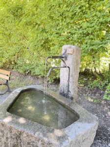 バスに乗ってノートルダムドゴルジュへ。トレイル中には水場がある。エビアンやコントレックスが苦手でなければ、ホテルの水道水、水場の水は問題なく飲める。山旅中、1度も水を買うことはなかった。