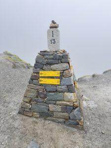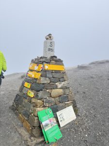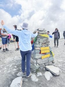 フランス、イタリア、スイスの三ヵ国がそれぞれの山肌を持つ三角錐のような山。雲に隠れて、山頂がちょっとしか見えなくて残念。