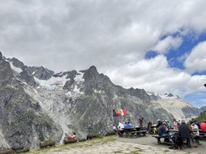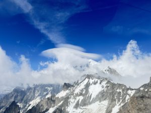 モンブランが横に迫ってきているが、残念なことに傘雲がかかっていた。こちらはイタリア側なので、正確にはモンブランではなく、モンテビアンコなのだろう。