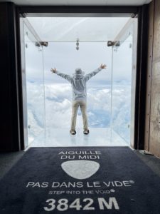 エギュードミディの展望台では専門スタッフさんが無料で撮影してくれる。わずかの時間に、24枚の写真を撮ってくださった。3842mの空中に立っている気分だ。