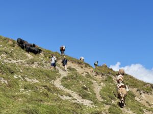 ガランゴロンとカウベルを鳴らす牛たちの横を通り、バルム小屋へ到着。