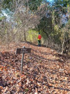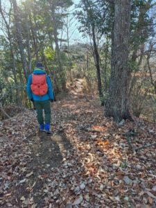 落ち葉の登山道を行きます。