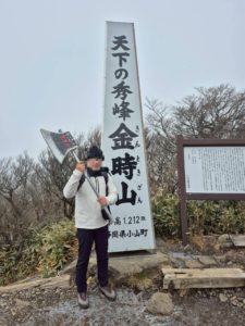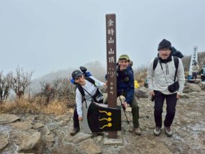 金時山山頂です。富士山の展望を期待してきたのですが本日は白い雲の中です。