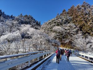 計画通り無事に下山。雪景色も眺められ素晴らしい初詣に。