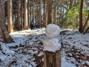 予想通り雪道を歩くことに。でもみんなこの景色にわくわく🥰