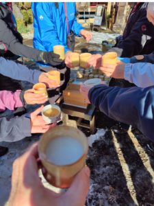 いよいよお待ちかねの「甘酒」。今年もよろしくお願いします、乾杯!